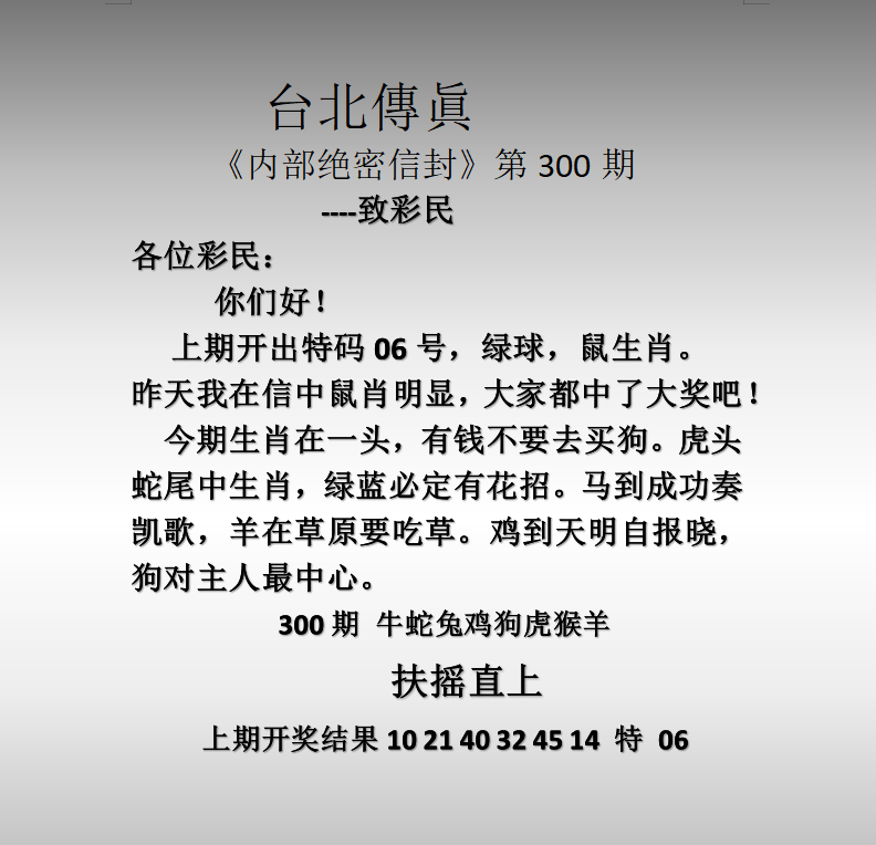 | 299期: 《⑤不中》「03.06.13.27.47」开:鼠06准 |